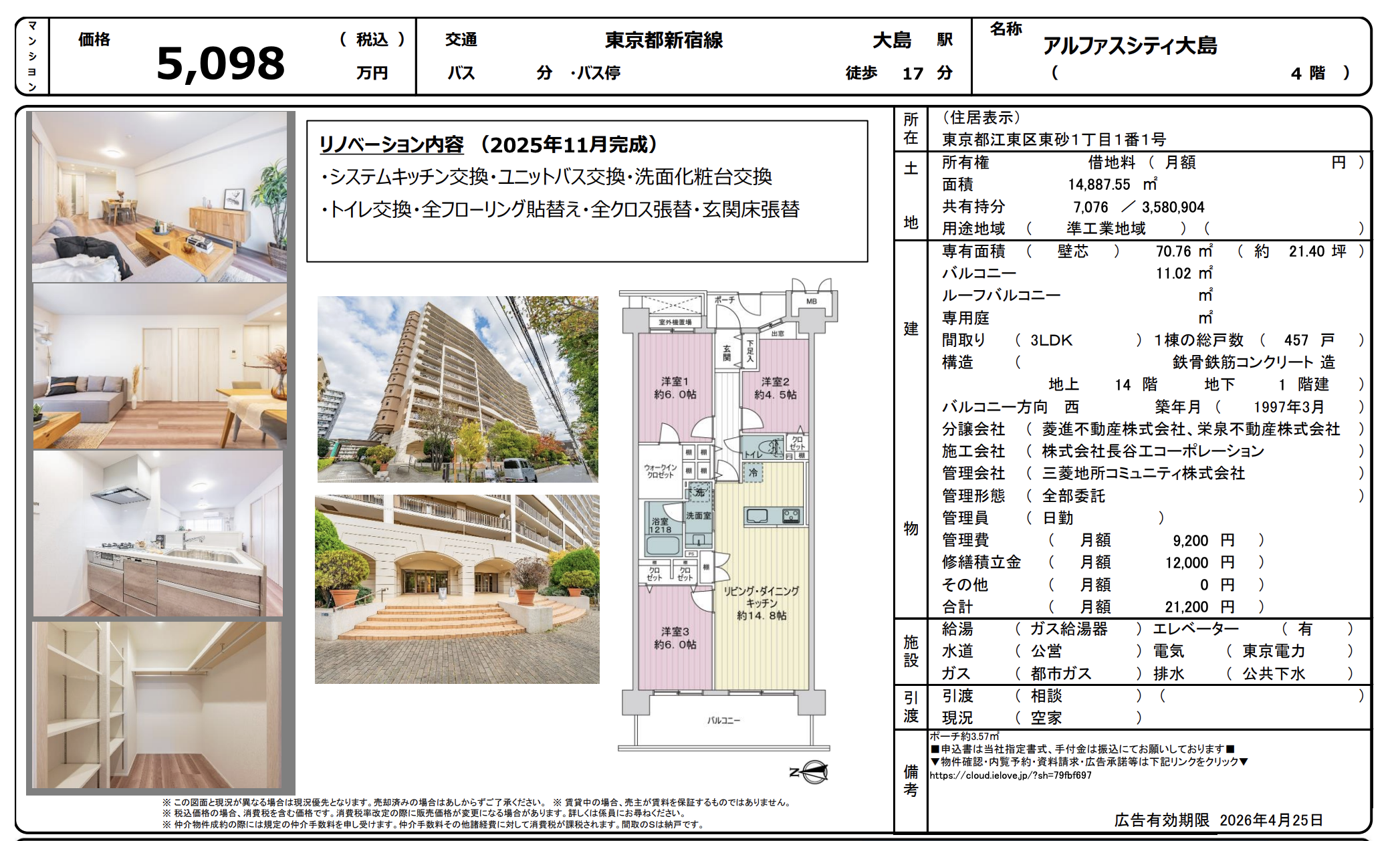 都営新宿線「大島」駅 徒歩17分