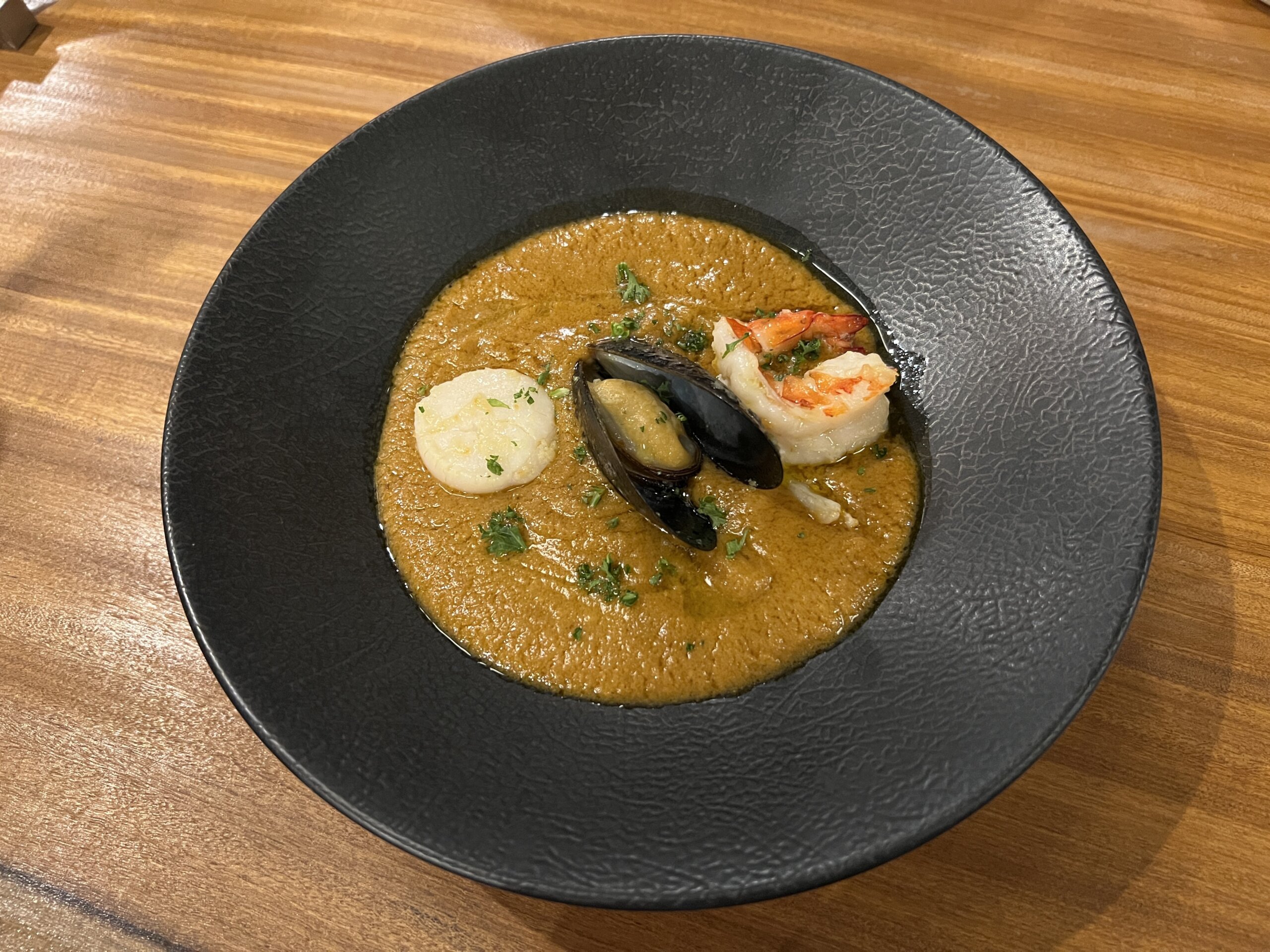写真左▲お次はブイヤベース。こちらは信じられないほど濃厚!UTAKATAでは海産物を使う料理が多く、使わなかったエビの頭の部分やアラなどを煮込んでスープに。通常ブイヤベースは濾すことが多いそうですが、あえてミキサーにかけて濃厚に仕上げているそう!これも毎日食べたい。