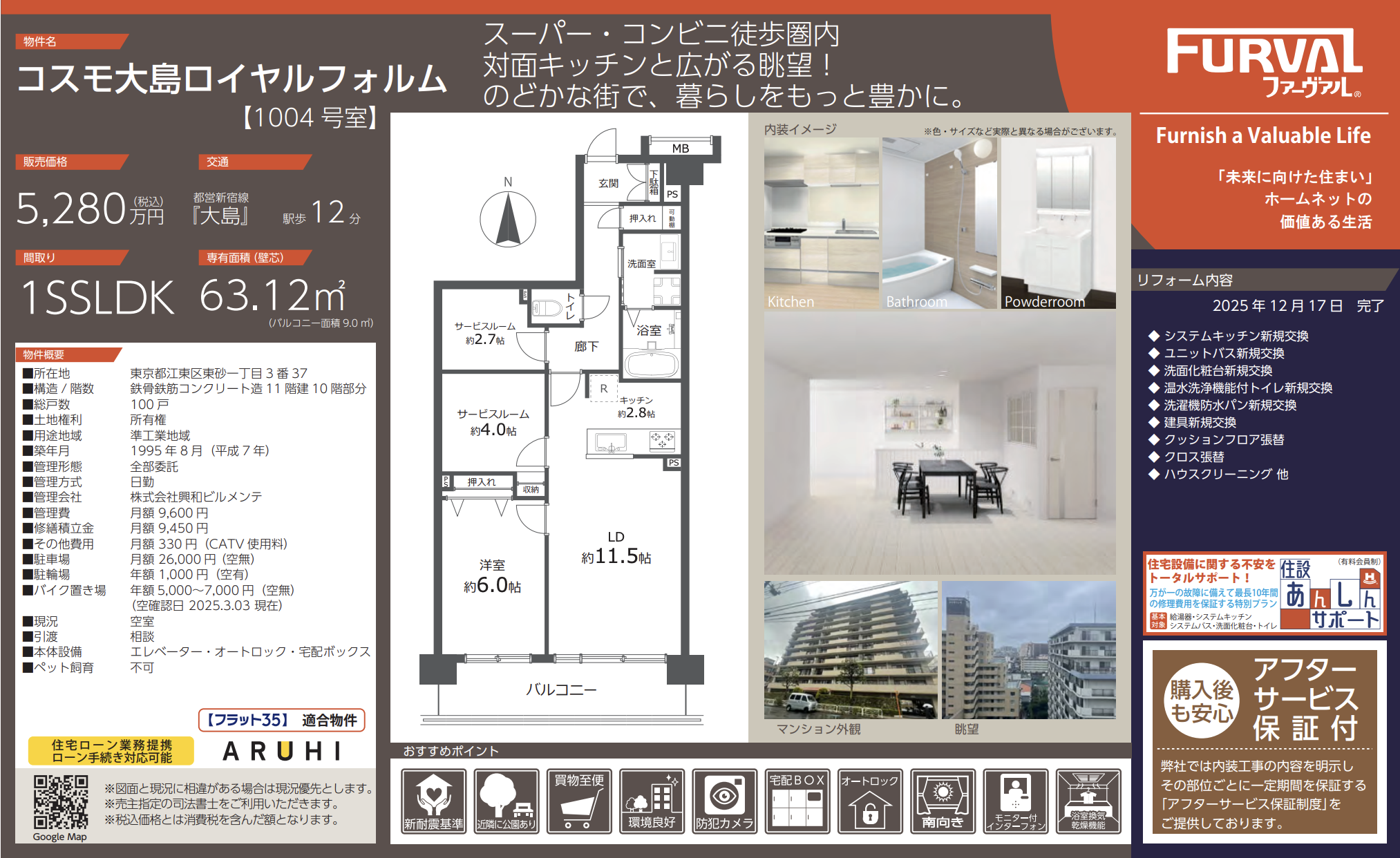 【リノベ済】喧騒を離れた、家族のためのやさしい住まい コスモ大島ロイヤルフォルム 63.12㎡ 1SSLDK 5,280万円|大島駅