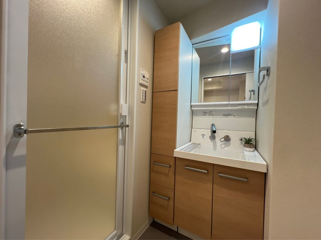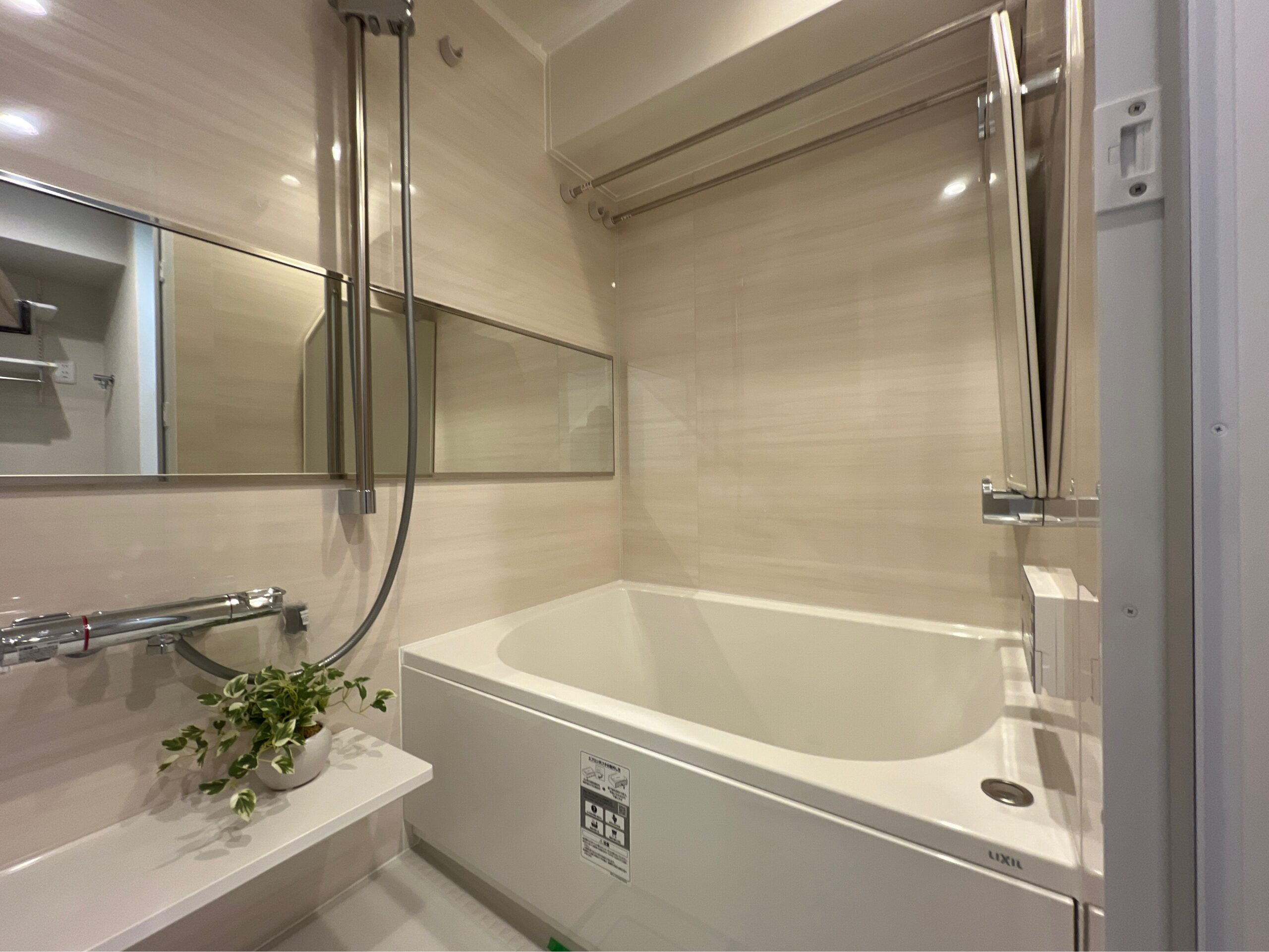 最後に水回りのご紹介です。コンパクトですが収納力のある洗面台に、ゆっくりできそうなお風呂!