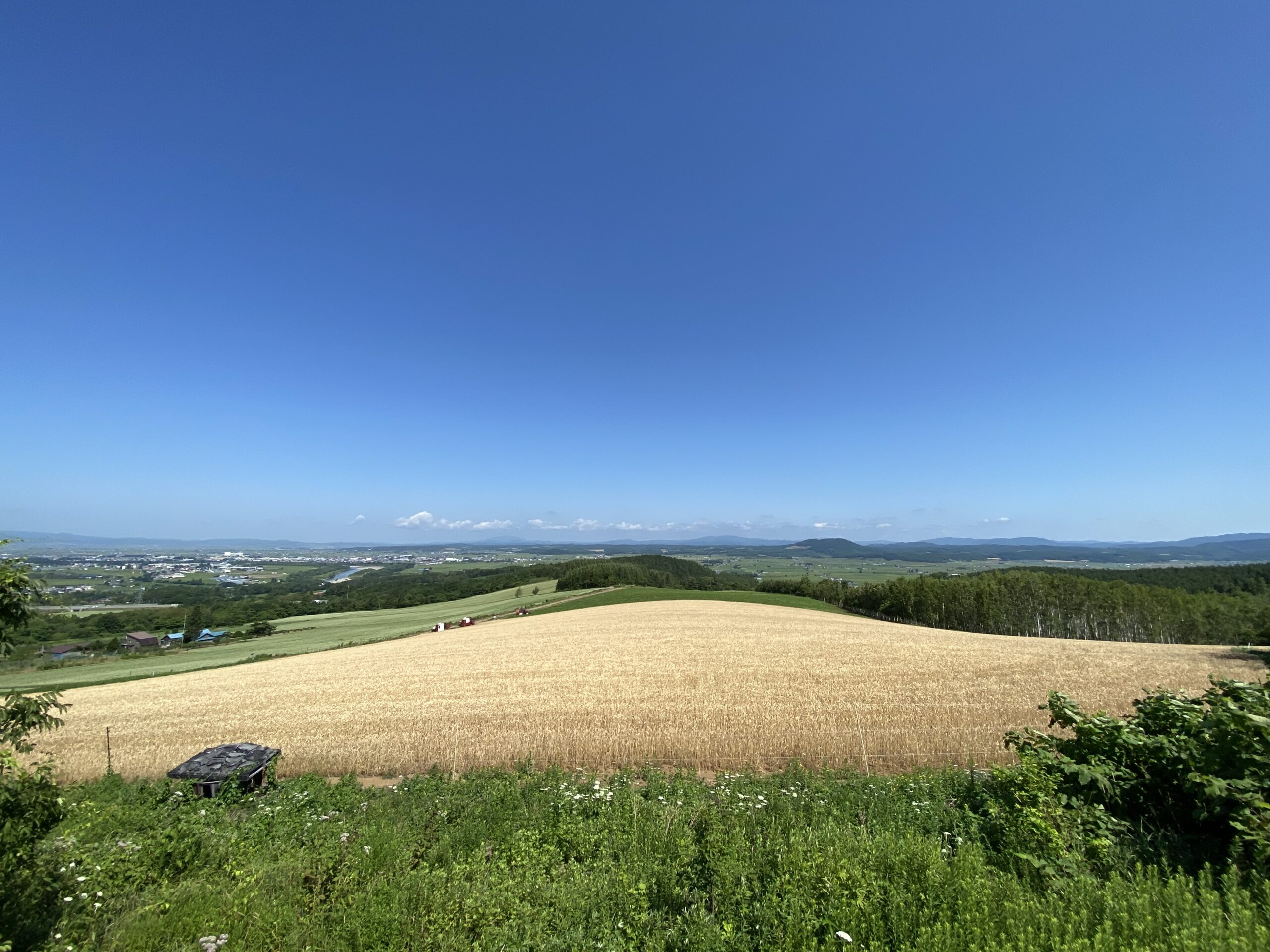 この日は天気にも恵まれて、緑色が広がる豆畑や黄金色に輝く小麦畑が空の青さとも相まって綺麗に輝いていました。