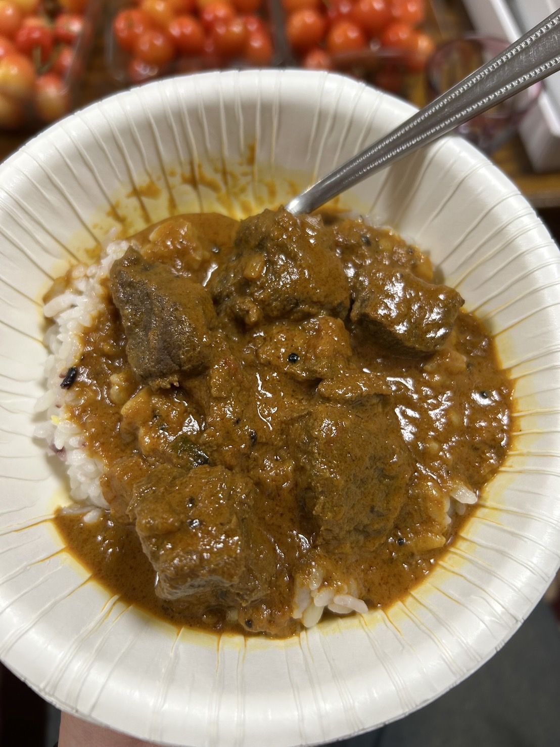その頃、江東区高橋のバー「NICO」のオーナー・小林さんが、持参したスパイスと深川市の方が用意してくれたエゾシカ入りのスパイスカレーを仕込んでおり、 二次会ではその絶品カレーを深川市の皆さんに振る舞い、語らいの時間が続きます。