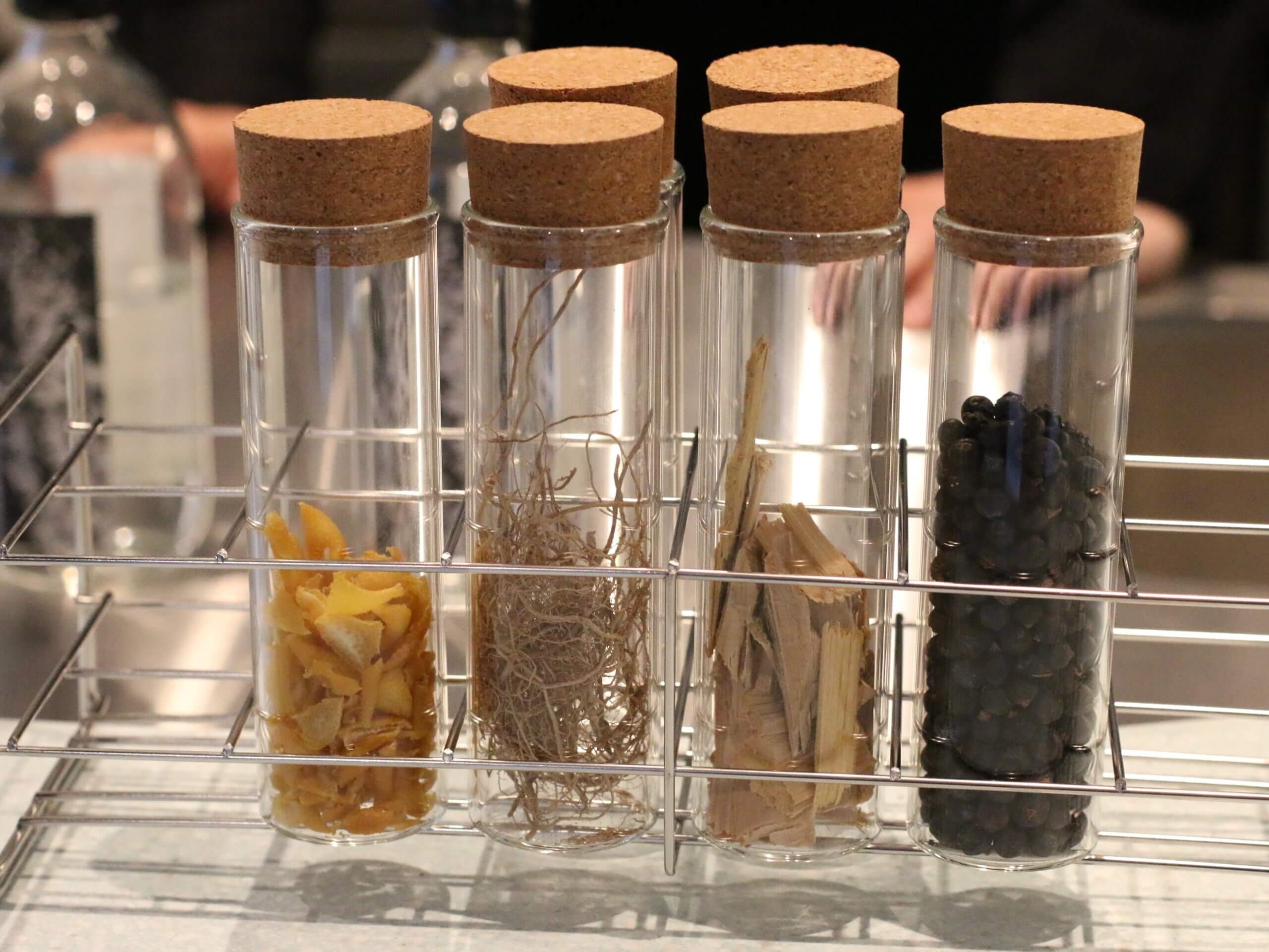 実際にジンの蒸留に使われているボタニカルもディスプレイされています。
