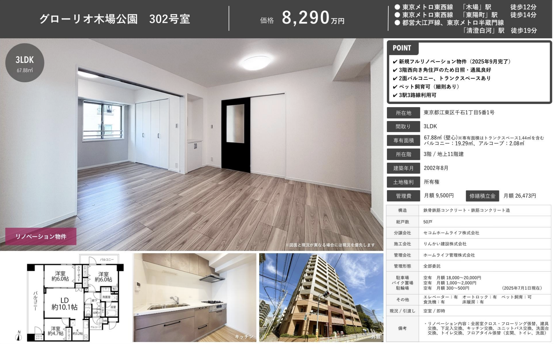 ・仙台堀川公園や木場公園に近い、恵まれた住環境