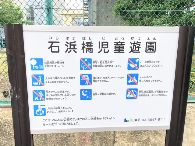 石浜橋児童遊園は、イトーヨーカドー木場店の入居する深川ギャザリアの南西側、石浜橋の近くにある小さな区立の児童遊園です。