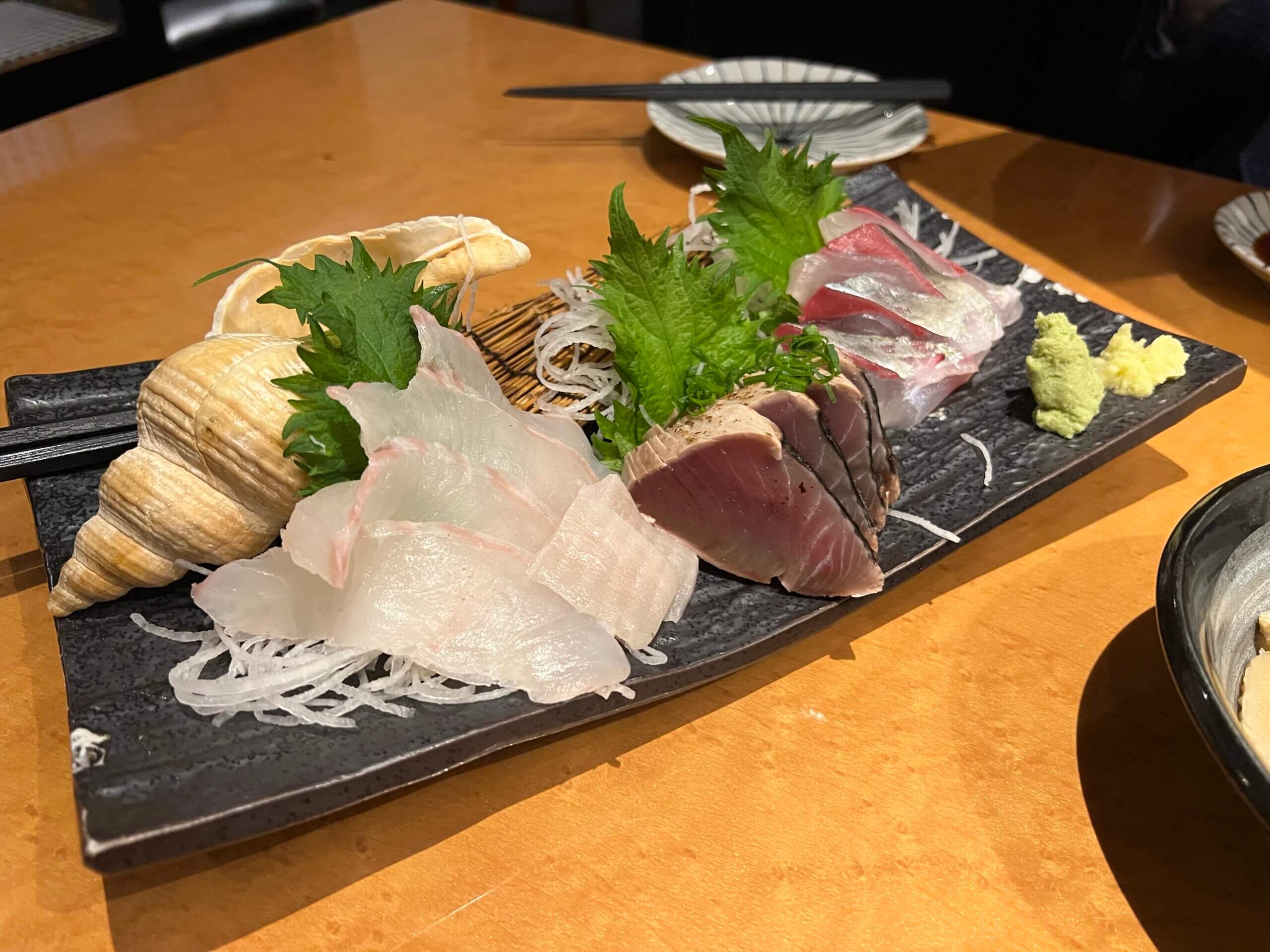 お刺身は基本厚切りですが、オーダーすれば薄めにも切っていただけるそう(笑)。でも新鮮な厚切りのお刺身を口いっぱいに頬張るのがとってもおいしい……。