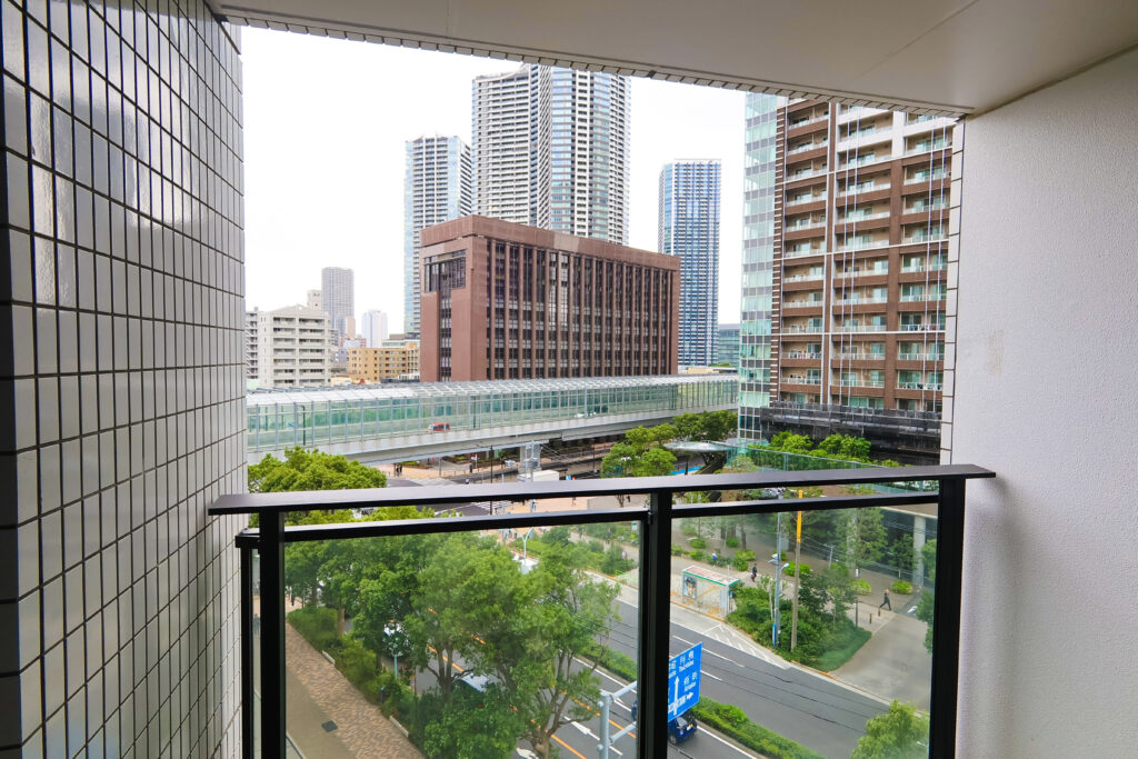 バルコニーからの眺望です。高層のマンションが並びますが、しっかり空も見えます。夜景も期待できそう!