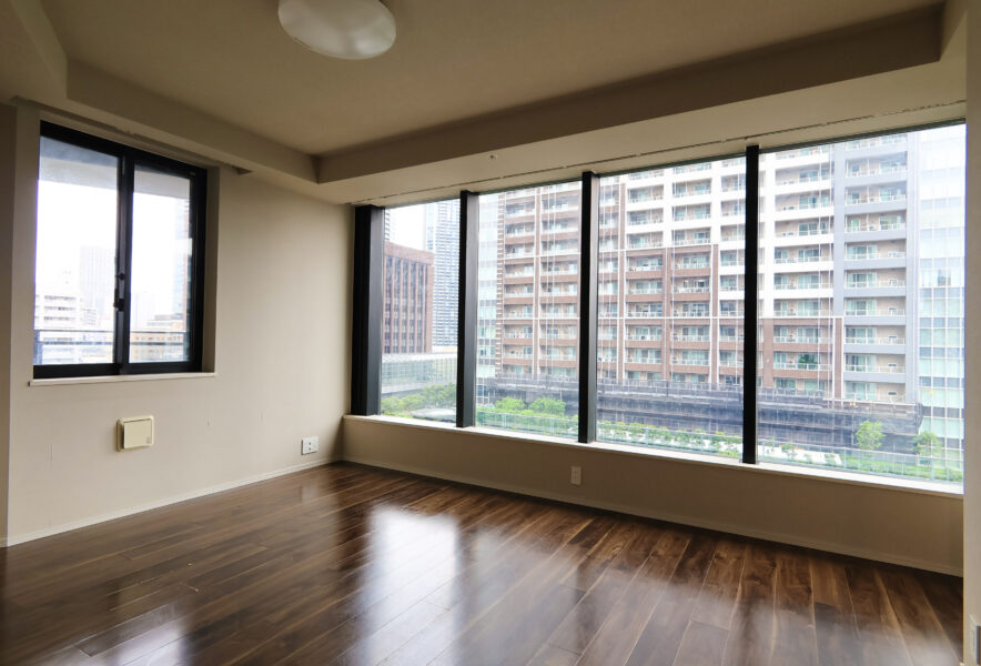 角部屋で大きな窓が魅力的な住戸!窓からは緑が見えるのでリラックスできそうです。