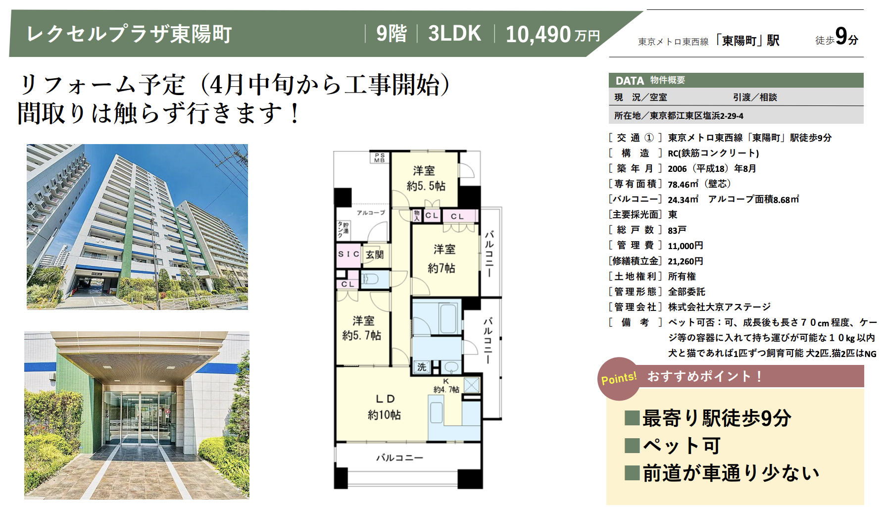 STRONG POINT ・リフォーム工事4月中旬開始(完成時期未定)