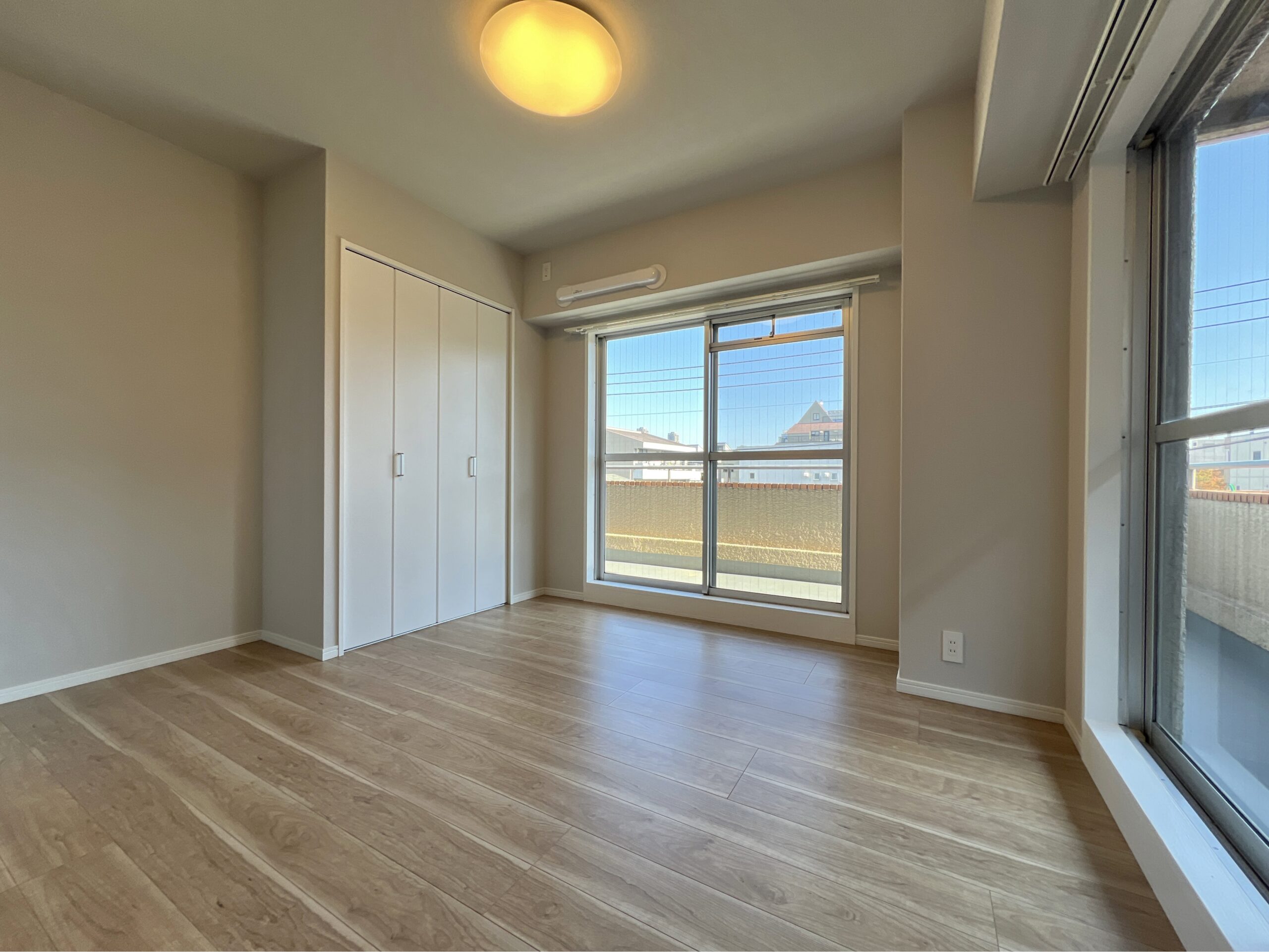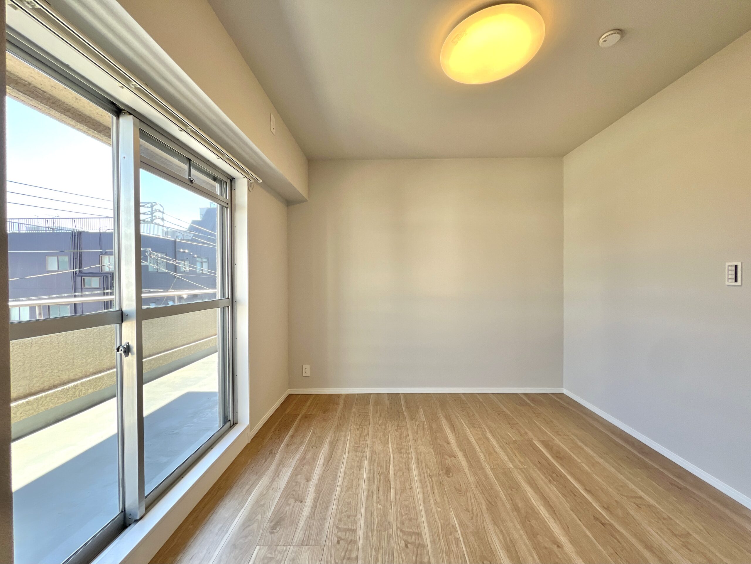 角なのでとにかく日当たりがいい!5.8畳あり、1日を通して明るいので寝室や作業部屋としても使いやすいです。