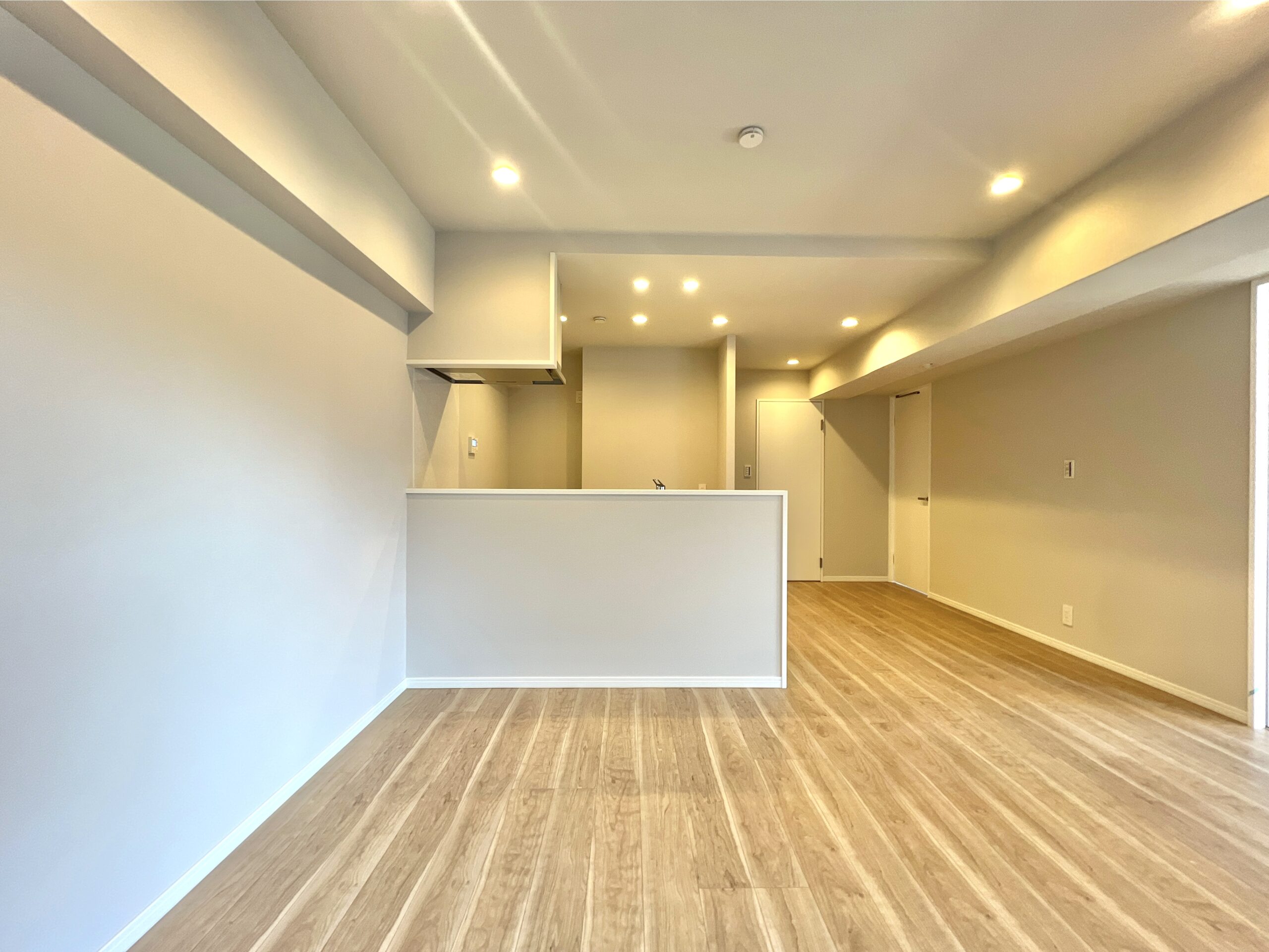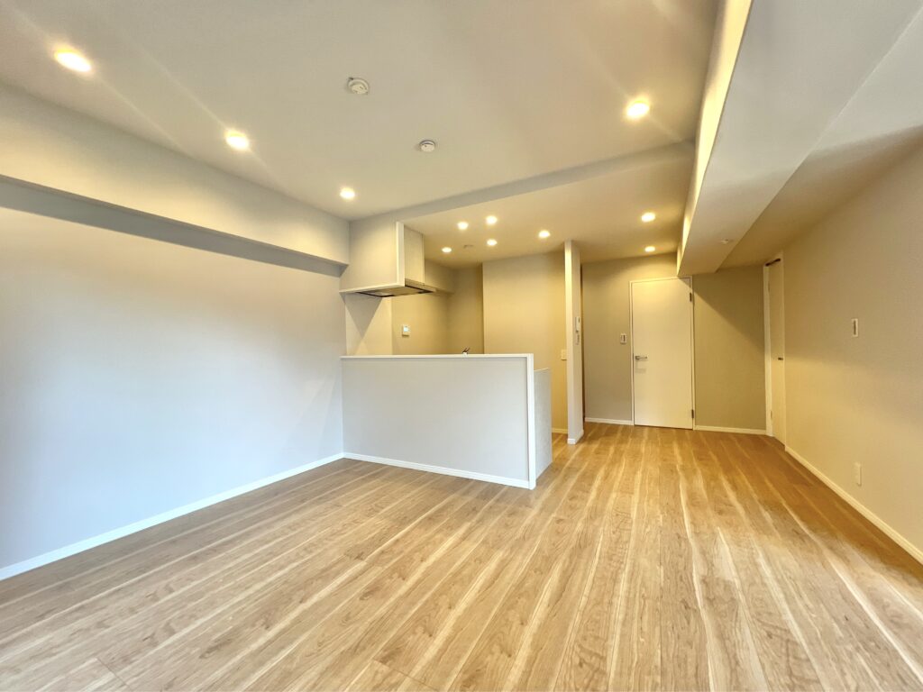 別の角度からも。天井はダウンライトが設置されていますが、お好みでシーリングライトも取り付け可能。
