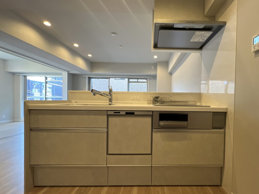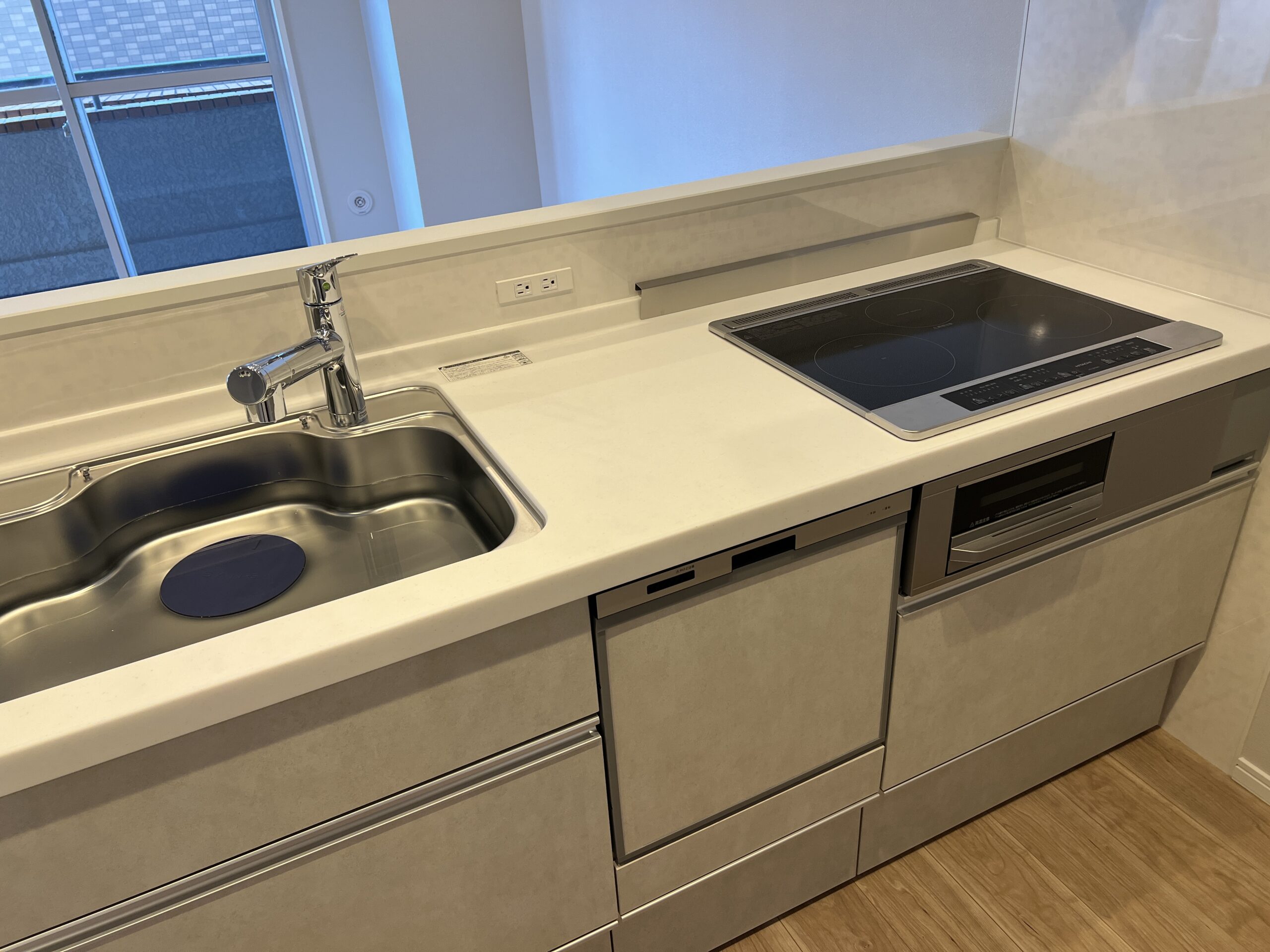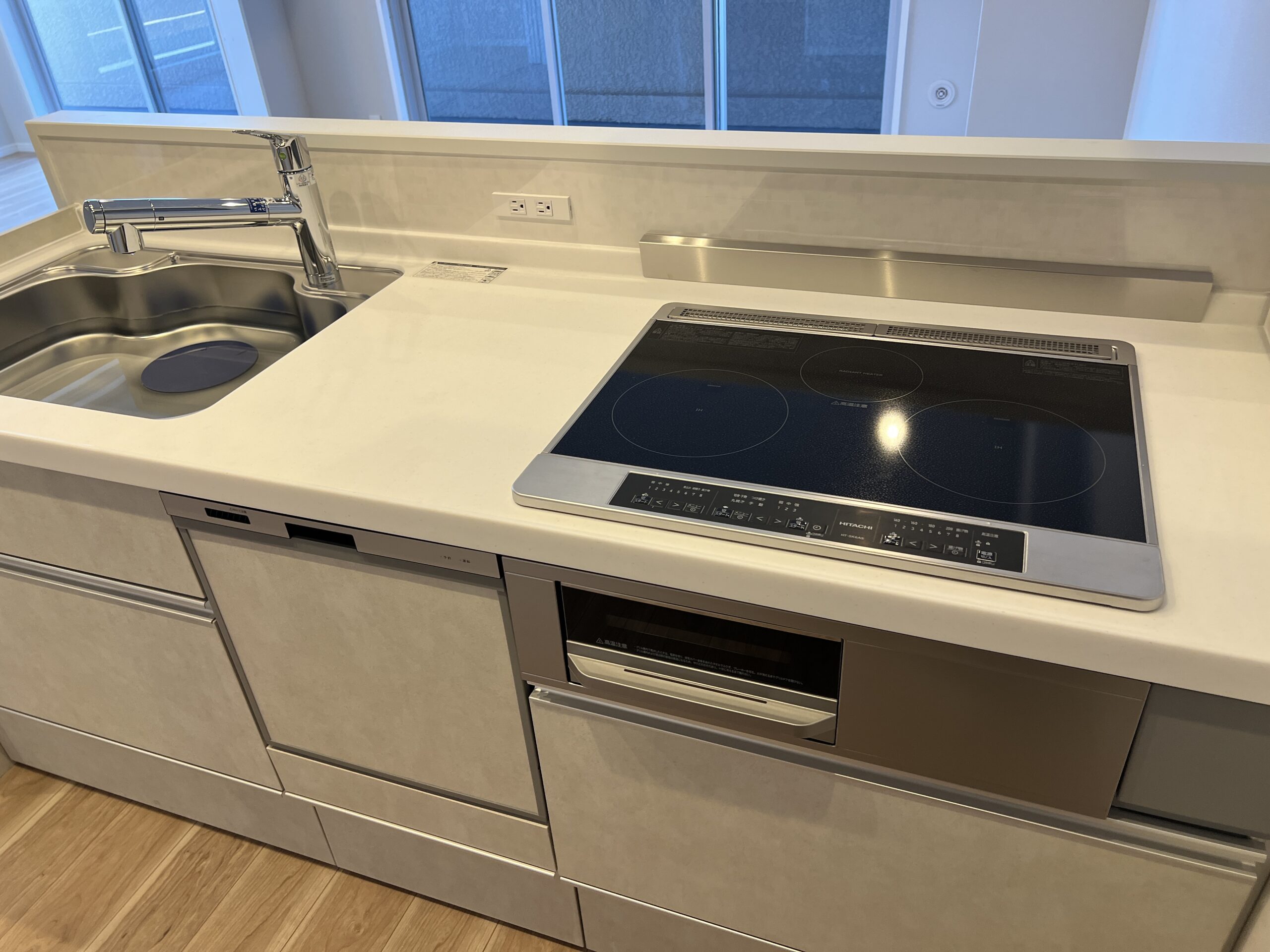 キッチンはお掃除のしやすいIHタイプ!食洗機と、作業スペースに設置されたコンセントが利便性◎です。