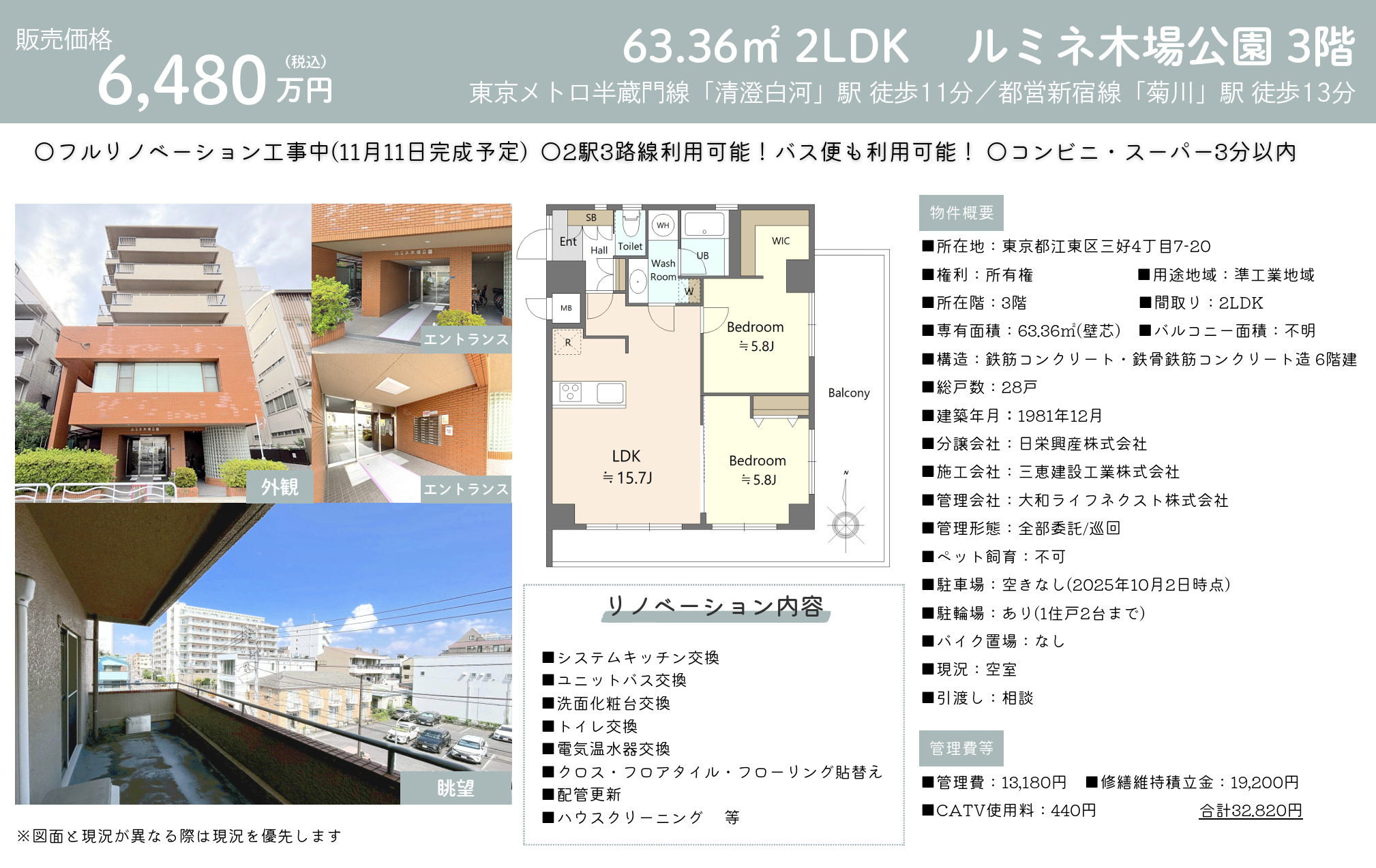 「ルミネ木場公園」は、1981年築・6階建・総戸数28戸、人気のエリアに建つマンションです。