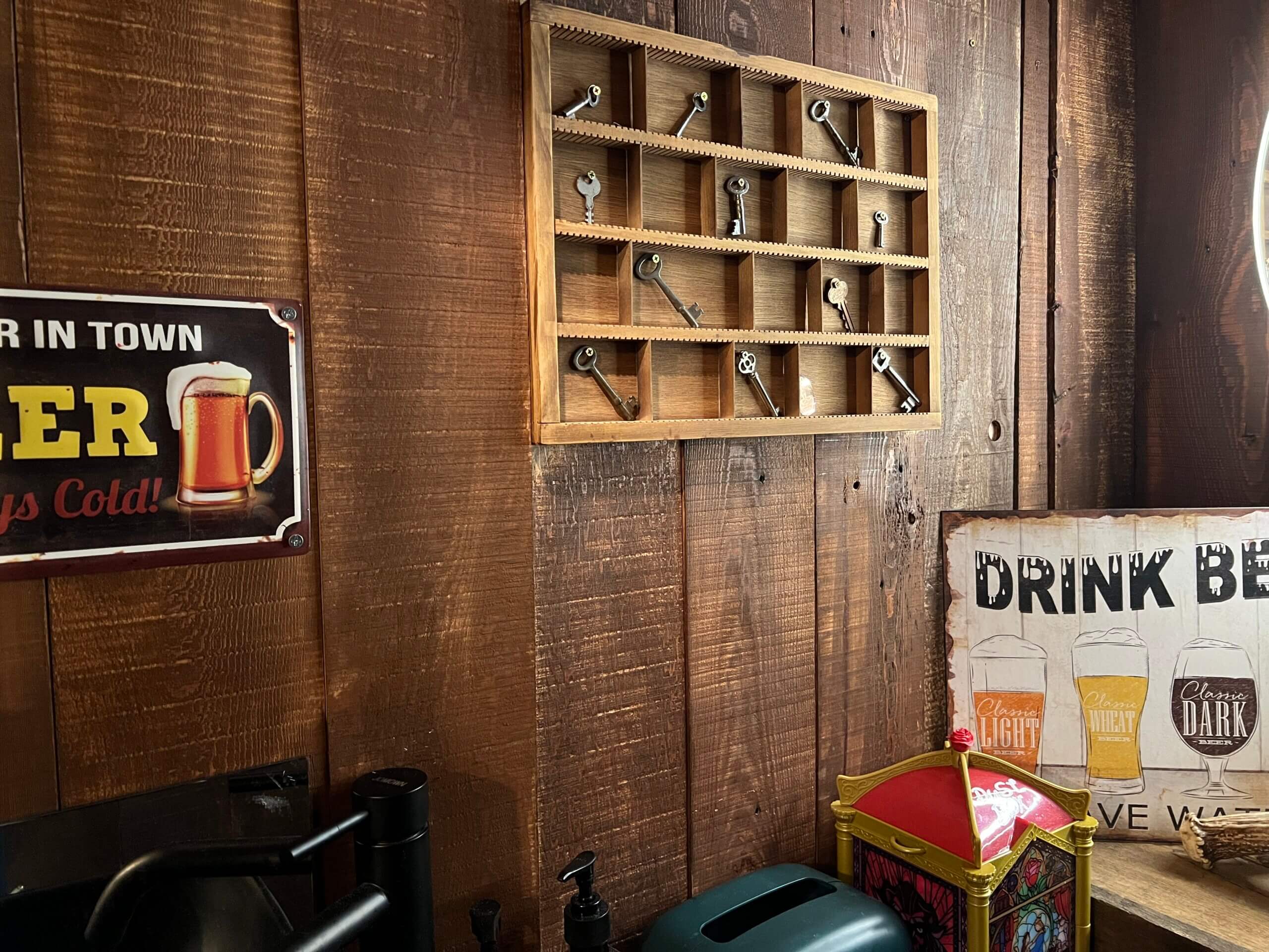特にこだわりはトイレの内装だそう。ドアにはオリジナルキャラクターのビアっくまがお出迎え。かわいい~!