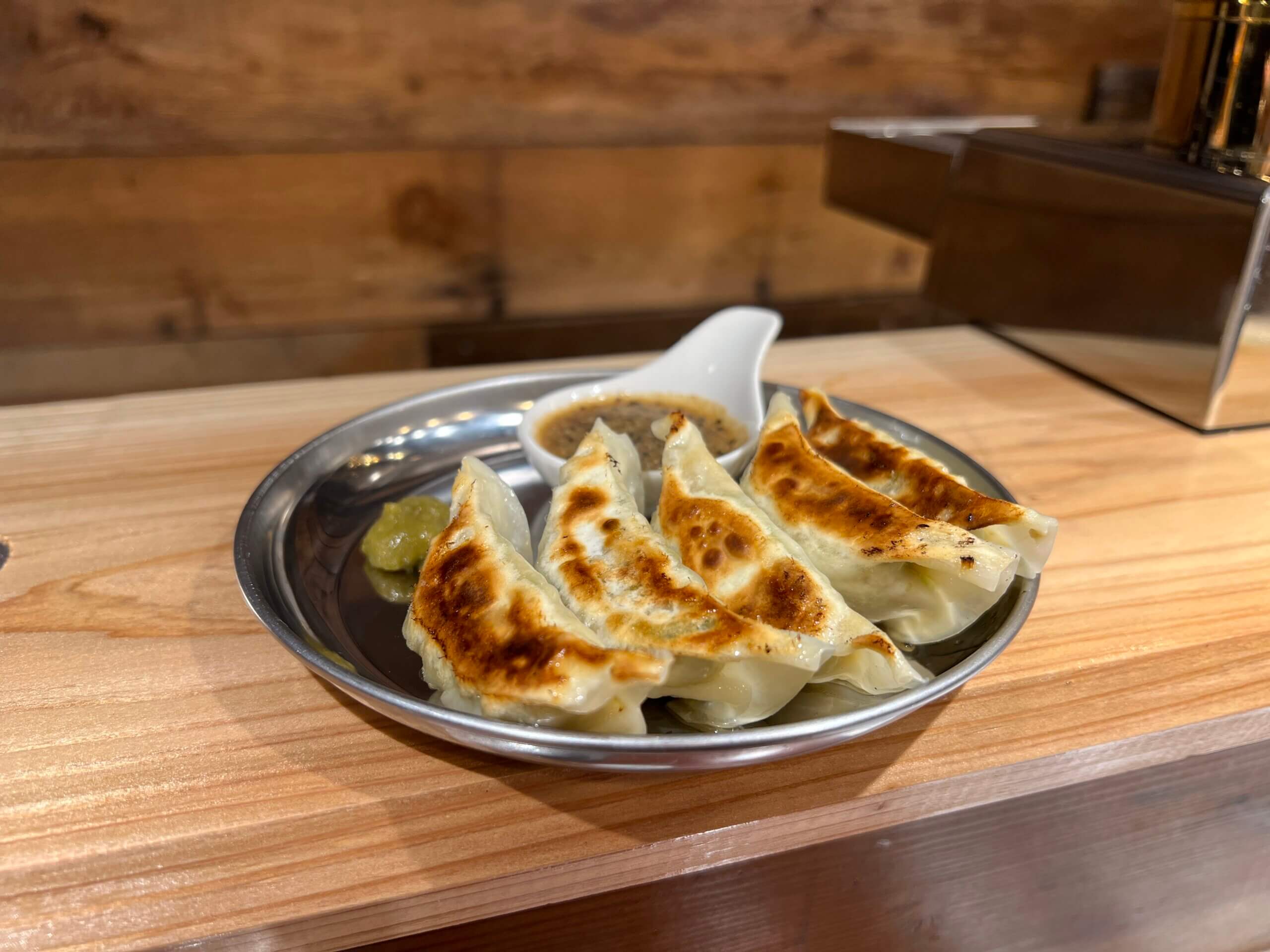 お次はビール専用餃子と絶品豚バラ炙りジャーキー。餃子は辛さをピリ辛と大辛から選ぶことができます。柚子胡椒がマッチしてて美味!ジャーキーは噛むたびにうまみがますタイプのビールにピッタリなおつまみ。他にも定番のポテトフライやナッツ、さっぱり系の冷やしトマトもご用意!