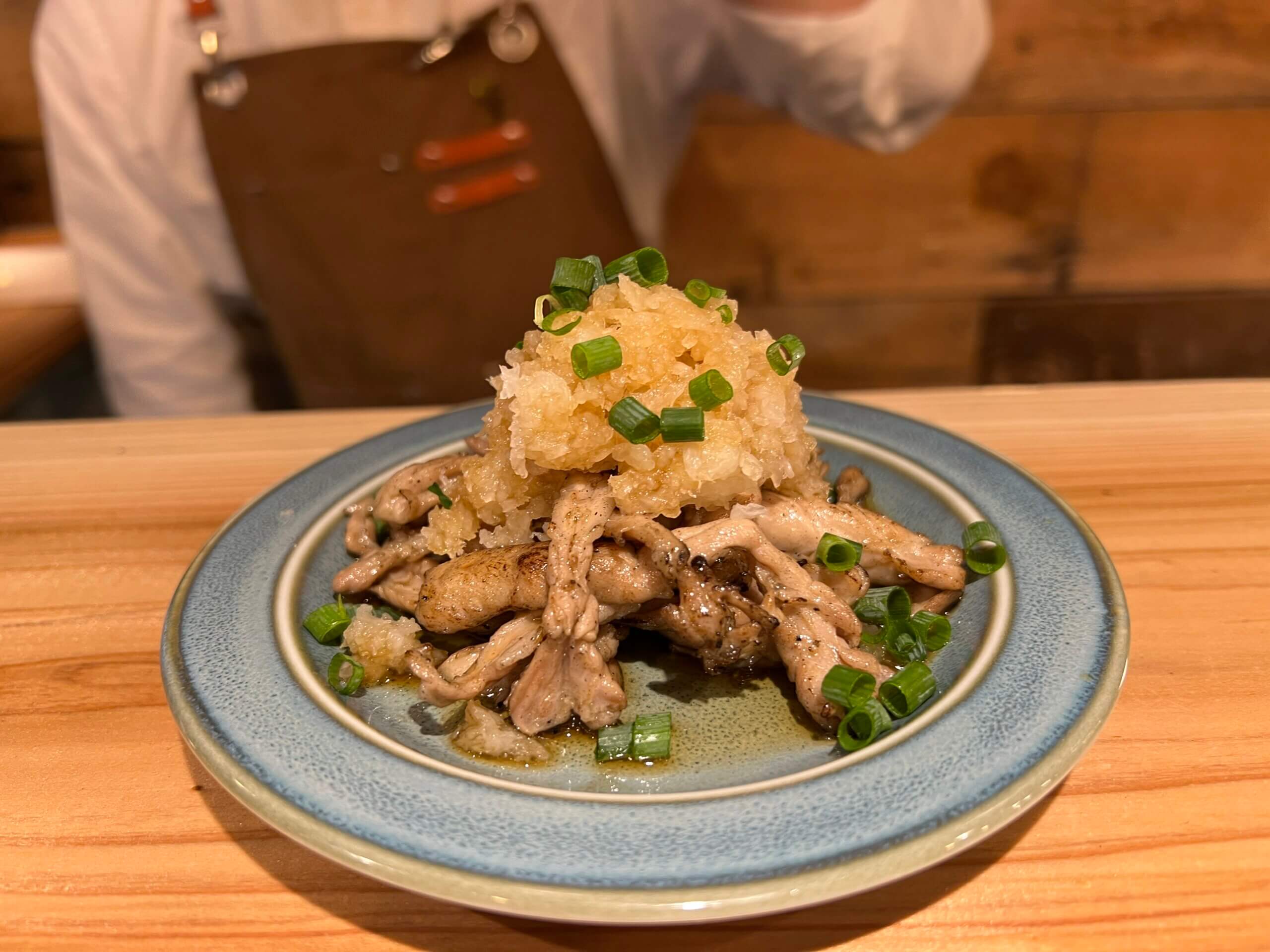じゃんじゃん食べますよ~!焼いたせせりを鬼おろしとポン酢で頂くさっぱりメニューや揚げたてサクサクとろとろなチーズたっぷりカニクリームコロッケも寒い時期にぴったり!