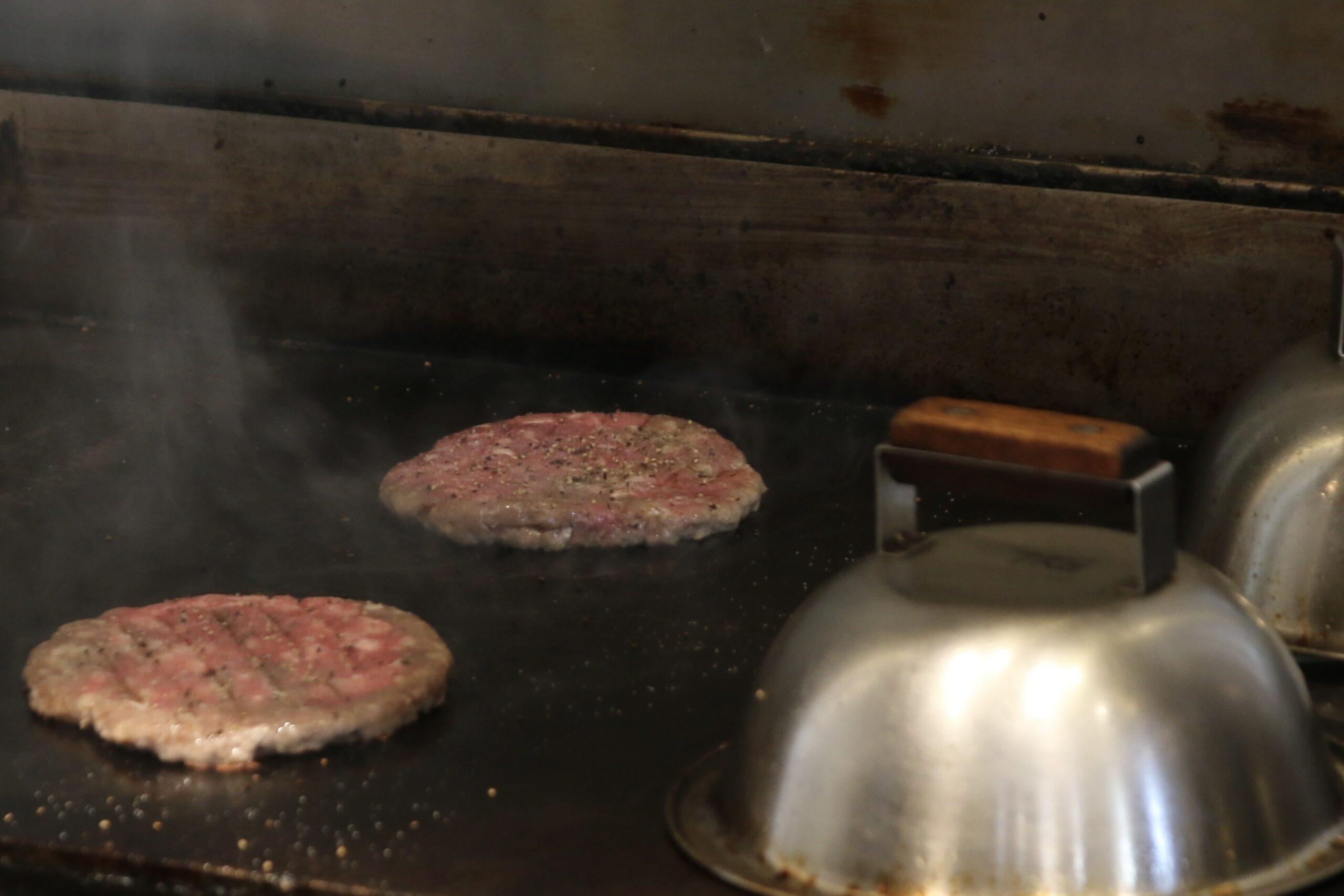 席に着くとカウンターからハンバーガーが作られるところを見ることができるため、ライブ感があってわくわく!