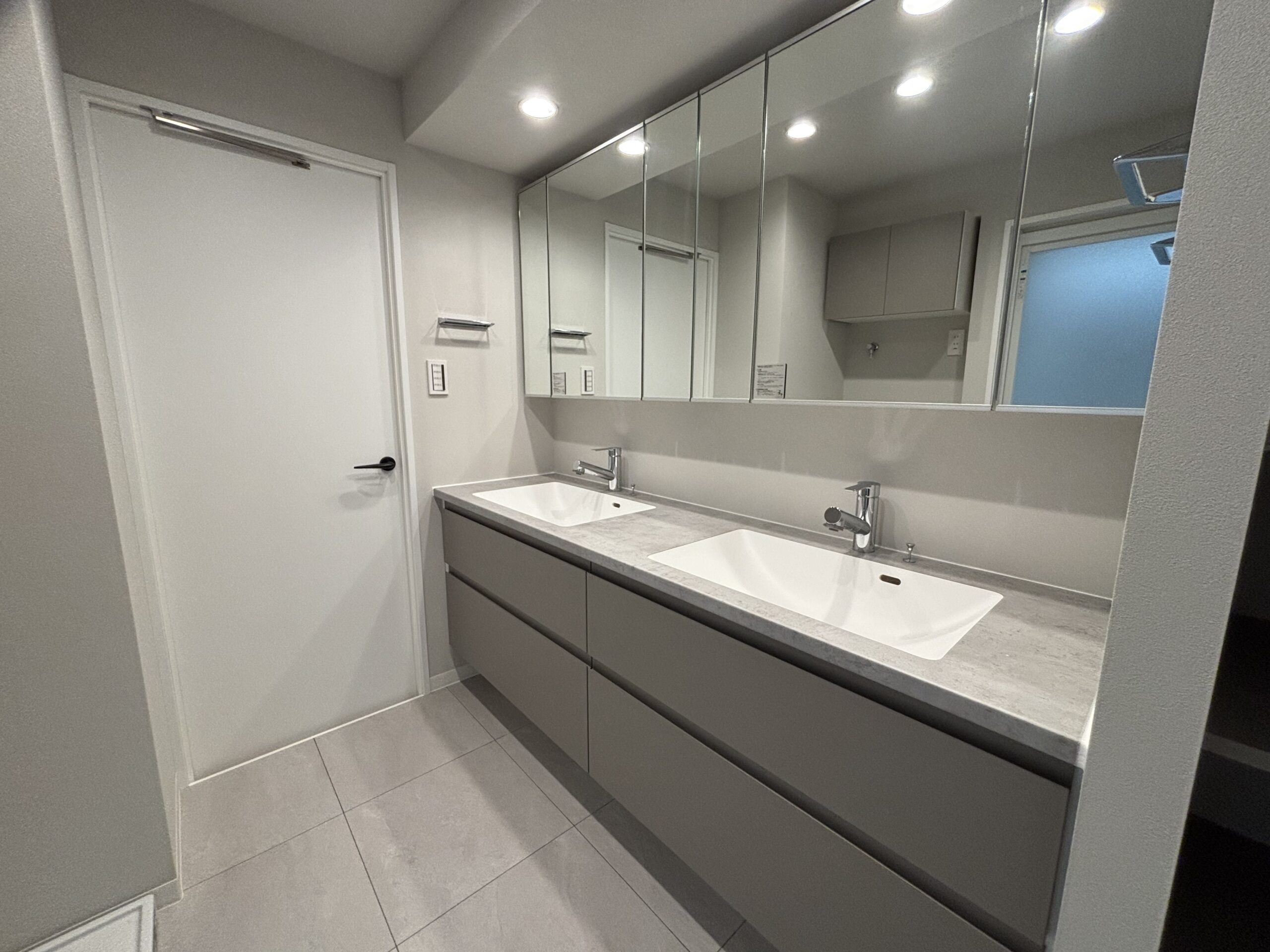 洗面台は珍しいダブルボウルタイプ!洗面所の混雑が緩和できちゃいます♪