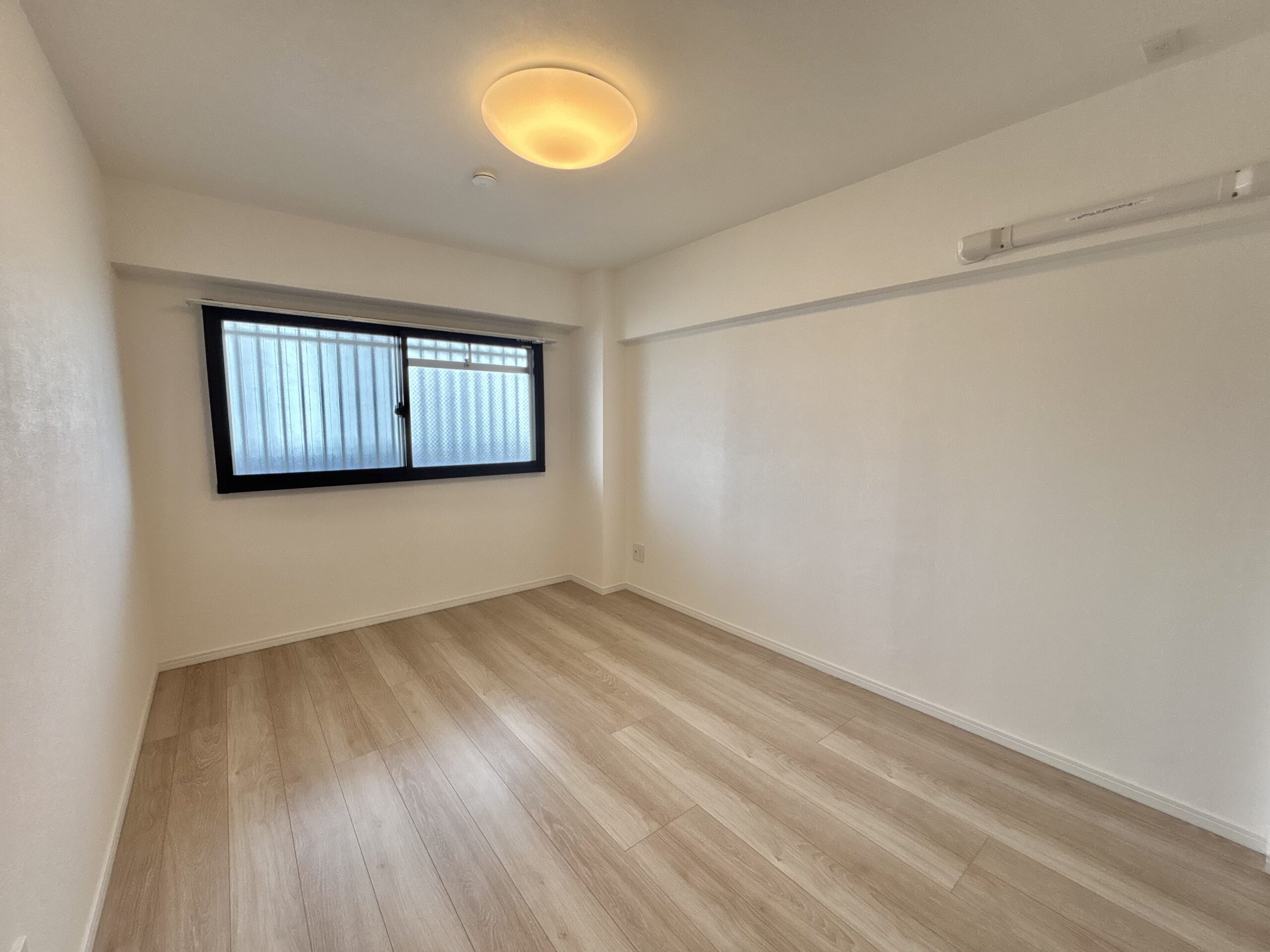 こちらは約6.3帖になります。共用廊下に面しており窓がついています。