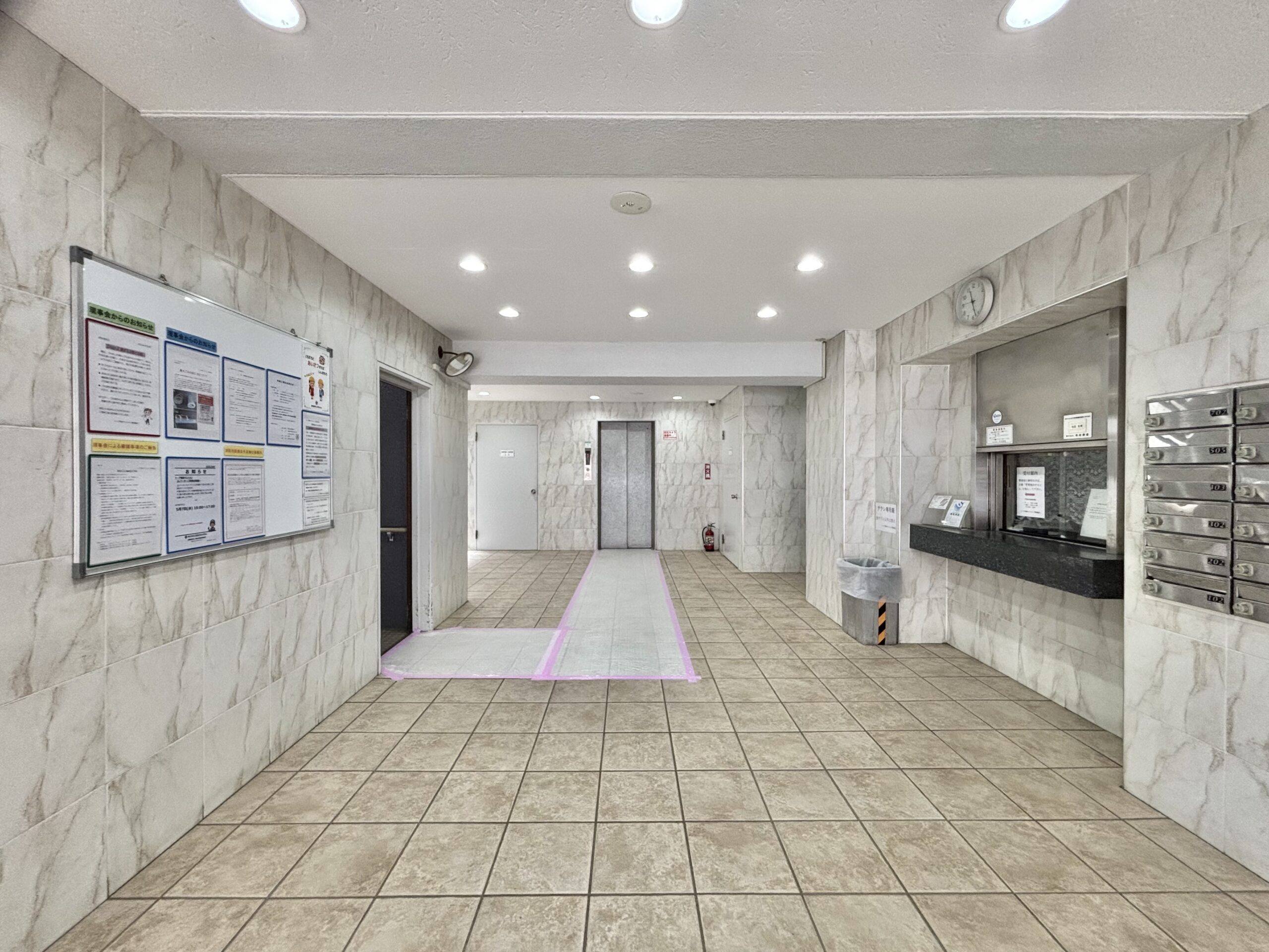 トーア南砂マンションは昭和55年築で年数が経っていますが、エントランスが綺麗に清掃されているなという印象で、1階のエレベーターホールは古さをあまり感じなかったです。